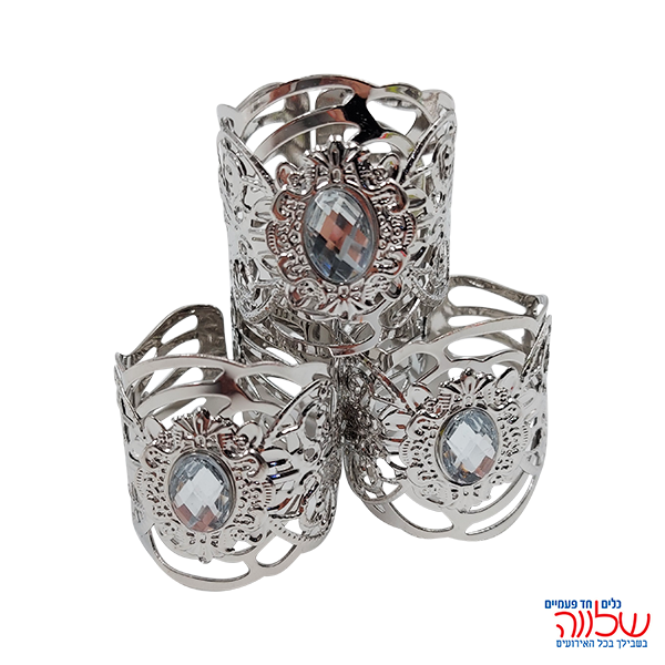 חבק מפיות מתכת כסף אבן יהלום 4 יחידות